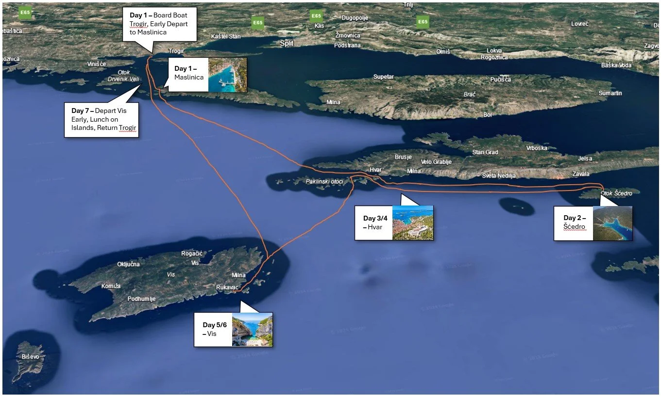 An overview of our Dalmatian coast itinerary with locations